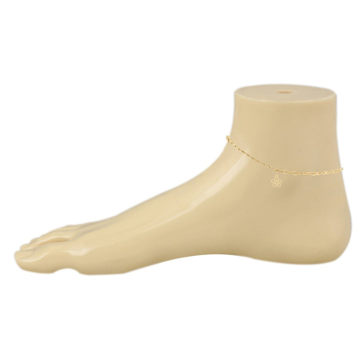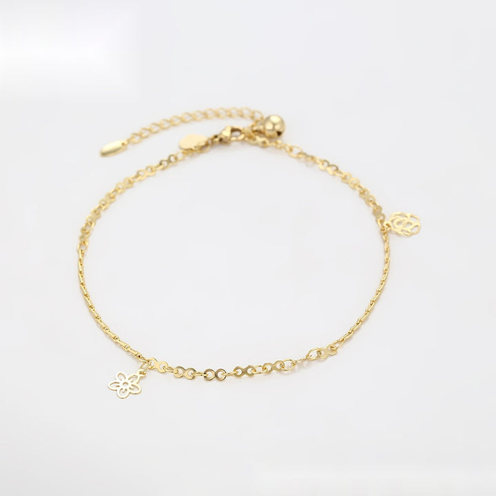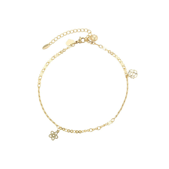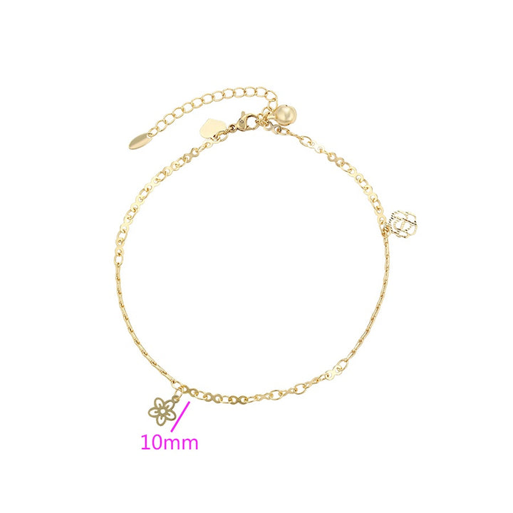 This delicate gold-plated anklet features a dainty chain adorned with charming floral charms, adding a touch of elegance and nature-inspired beauty to your ankle. Pair it with a flowy maxi dress and sandals for a boho - chic look. Wear it with shorts and a simple top for a casual, summery vibe.