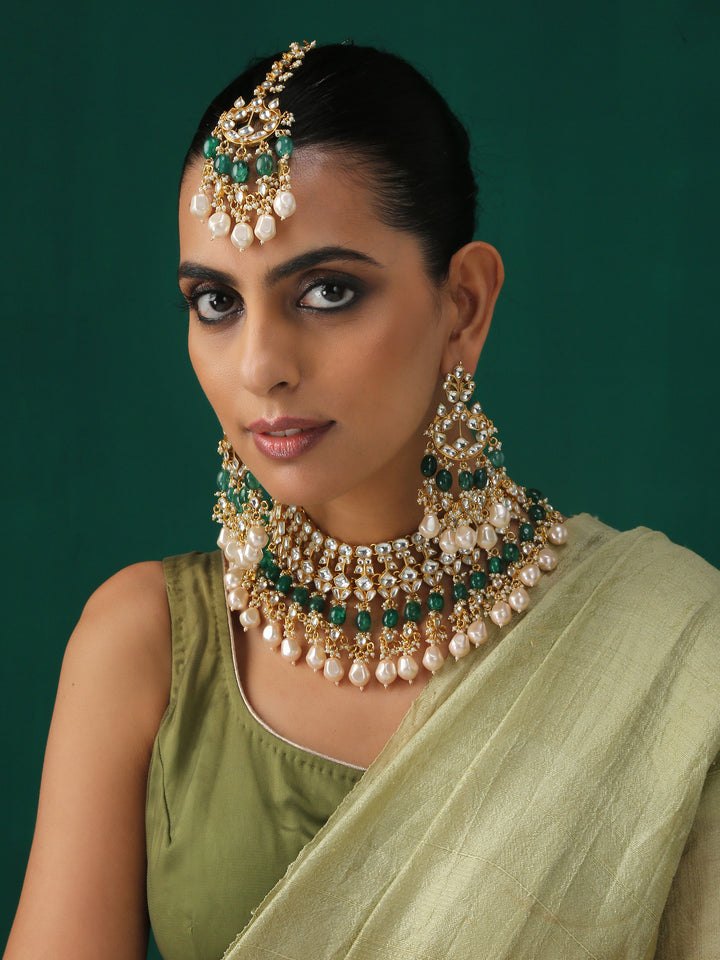- Item(s): Kundan Necklace, Earrings and Tikka.