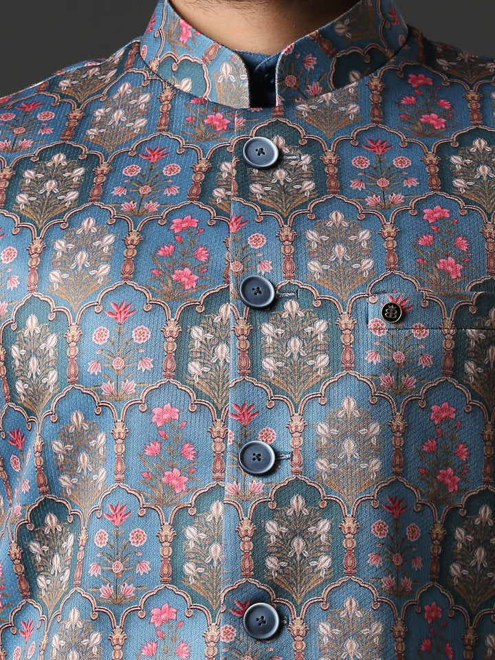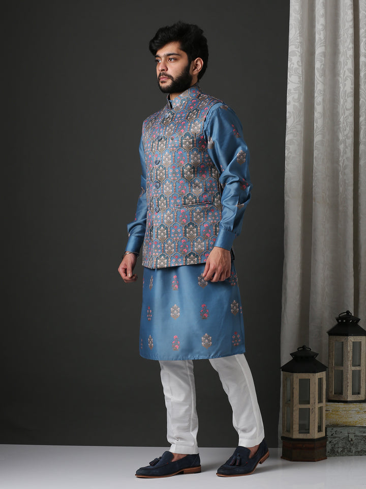 Modern Luxurious Printed Kurta set with Printed Bundi (Nehru Jacket)