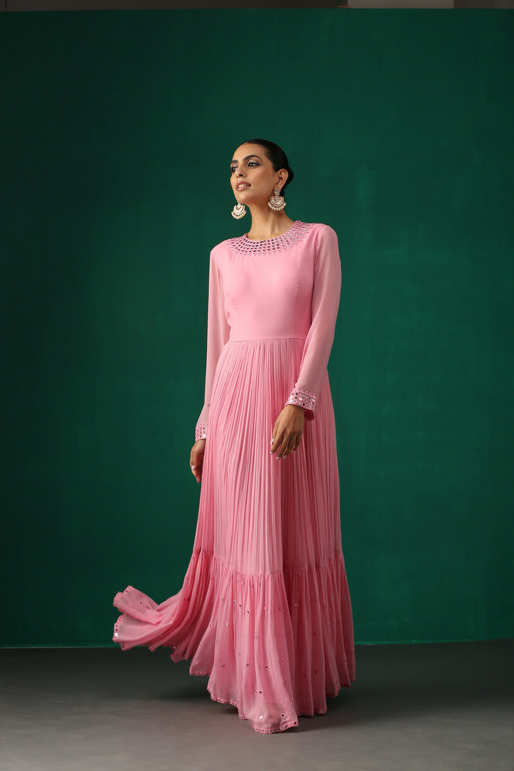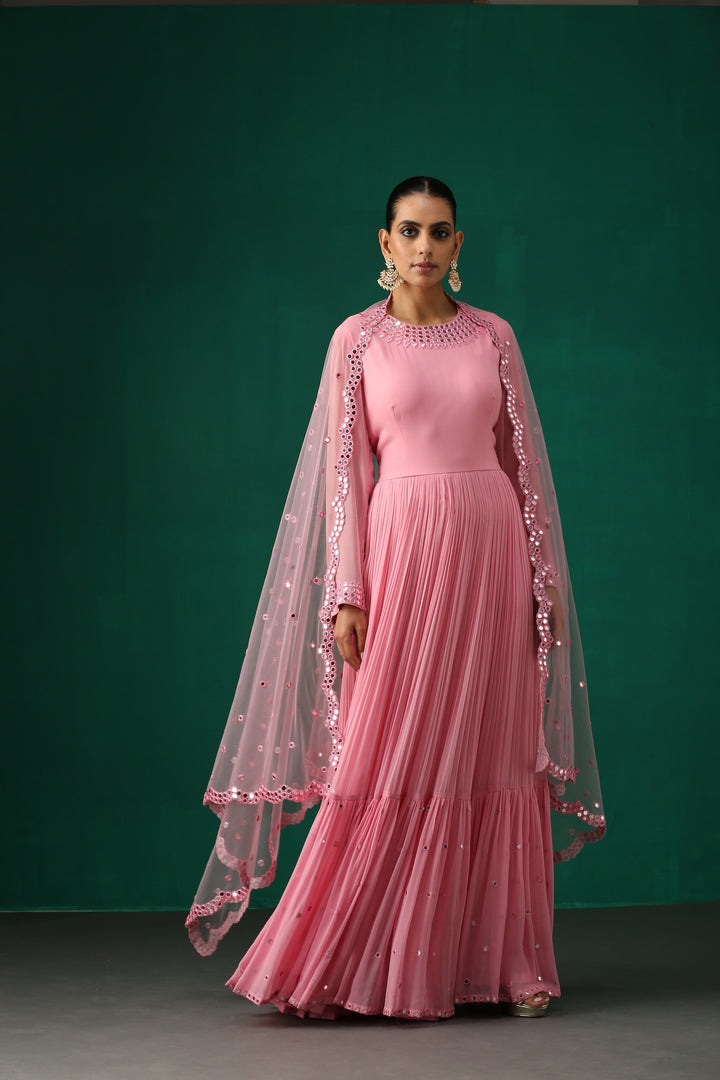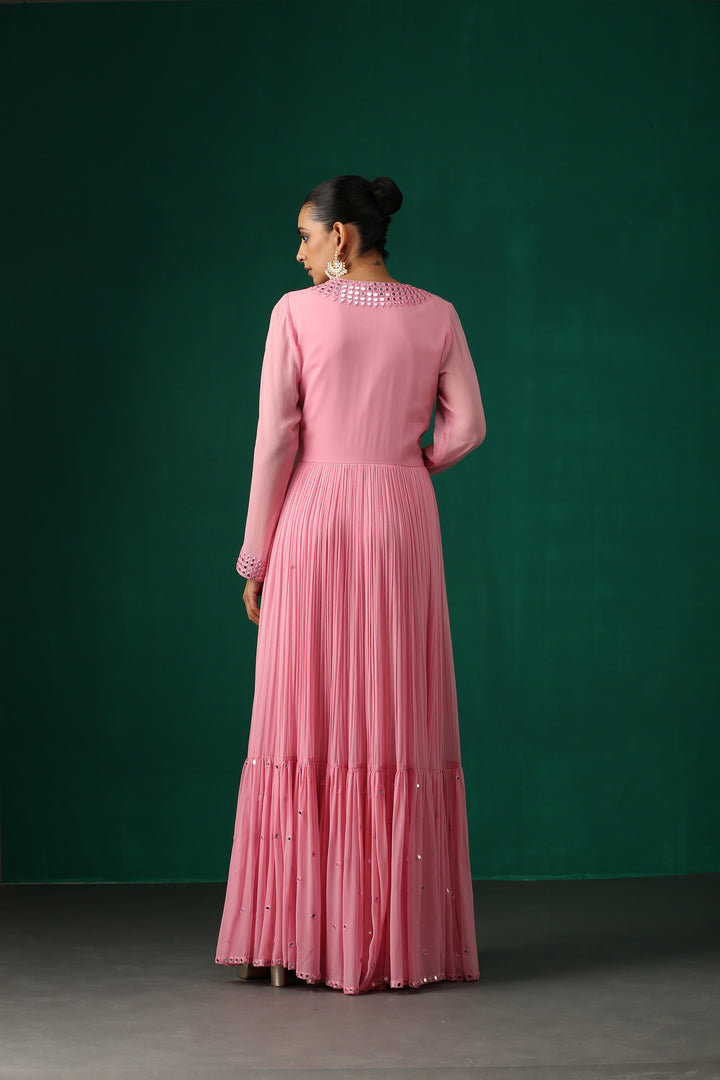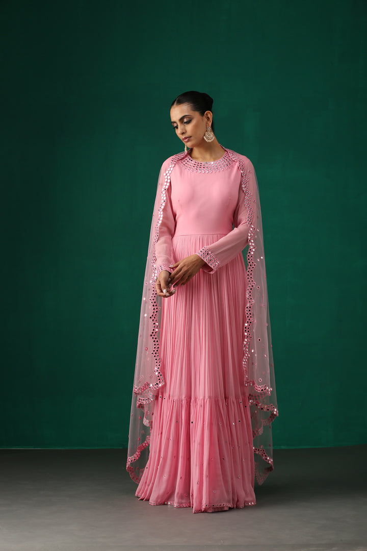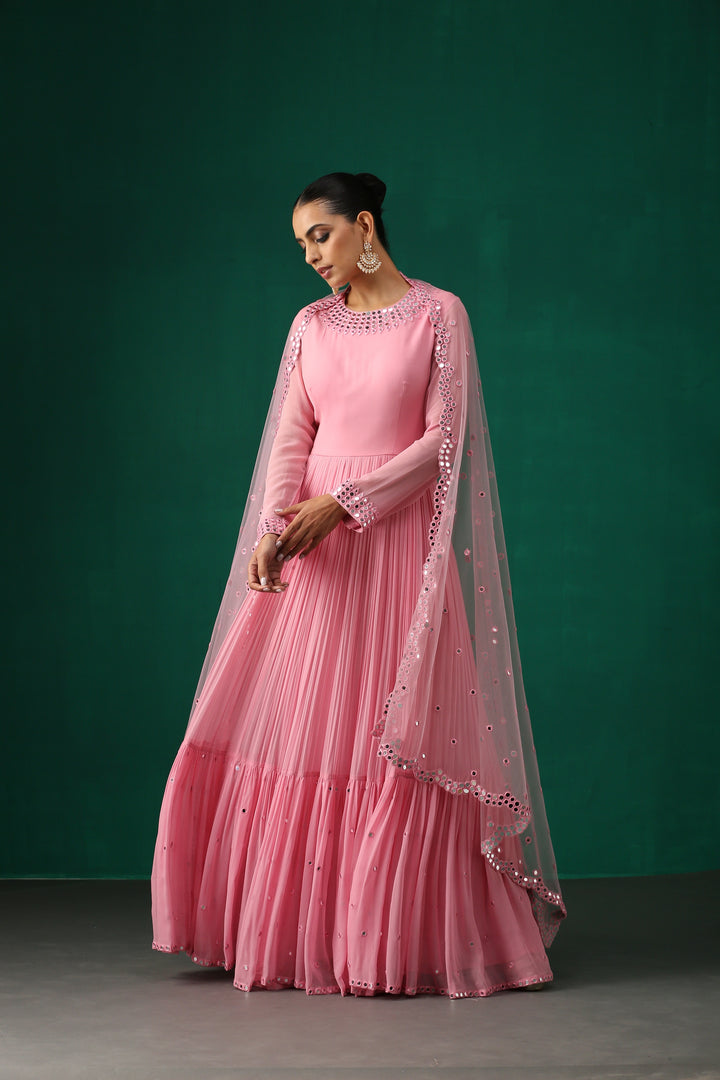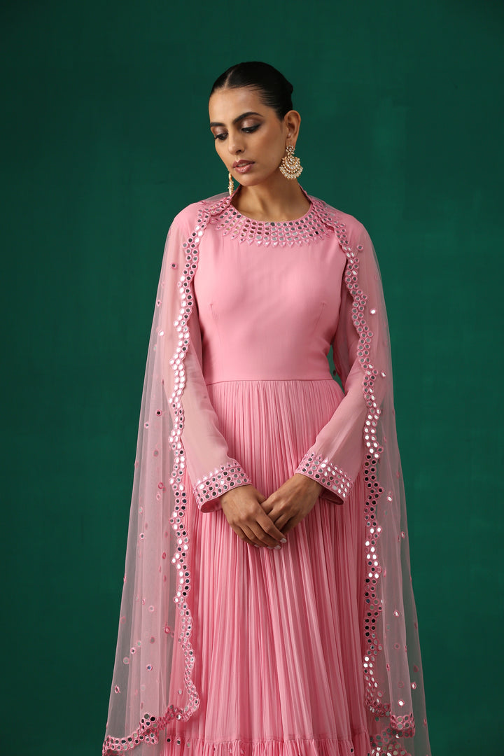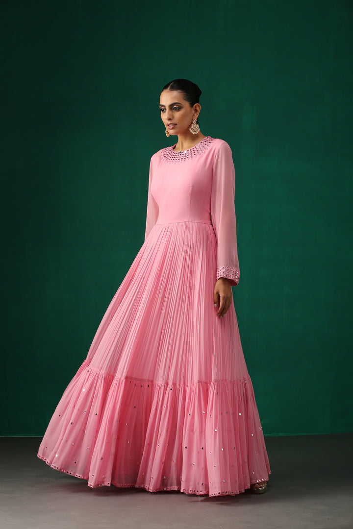 Pink Anarkali with Mirror Work