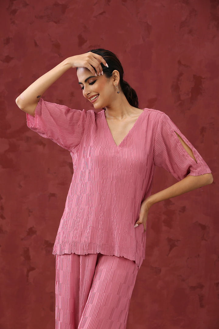 Pink Pleated Cord Set