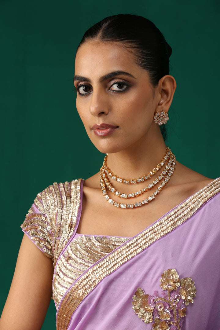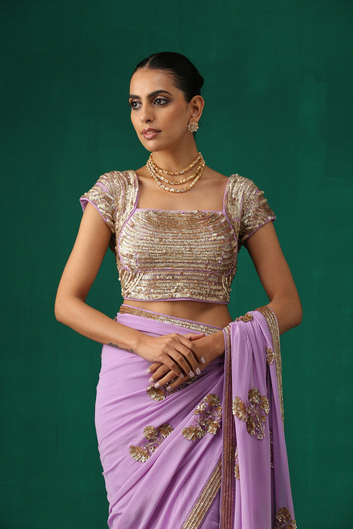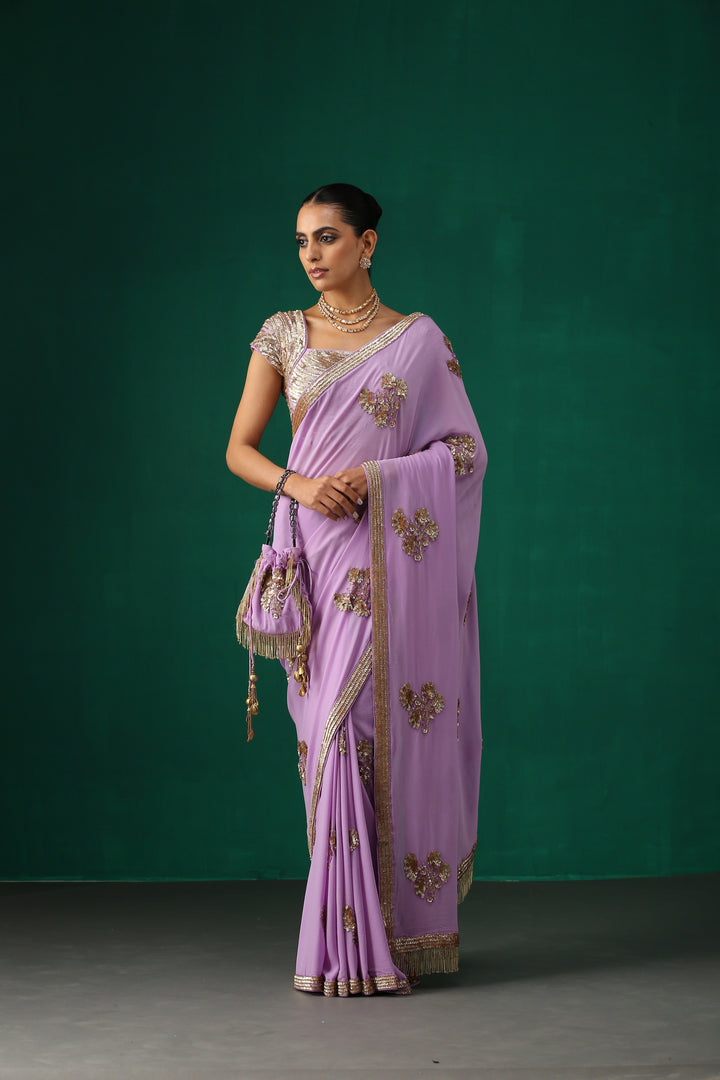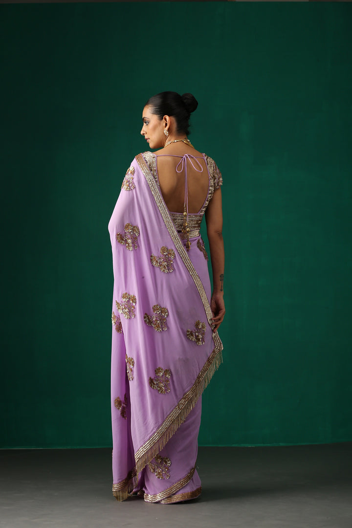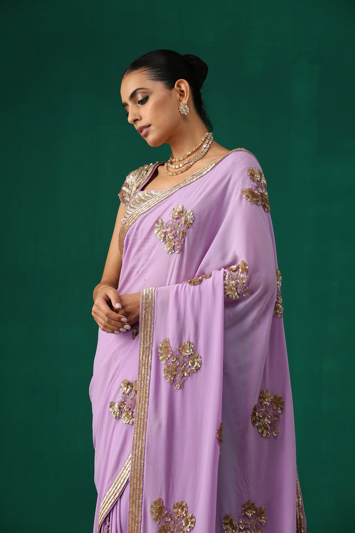 Purple Hand Embroidered Sequence Saree