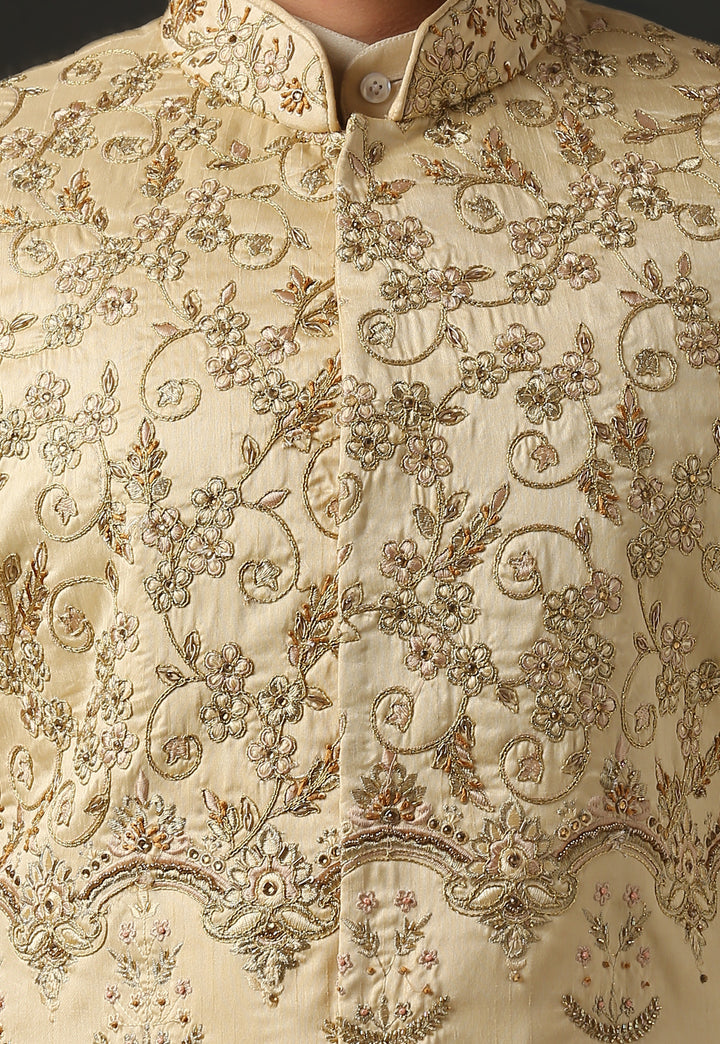 Luxurious Modern Hand Embroidered Cream Sherwani